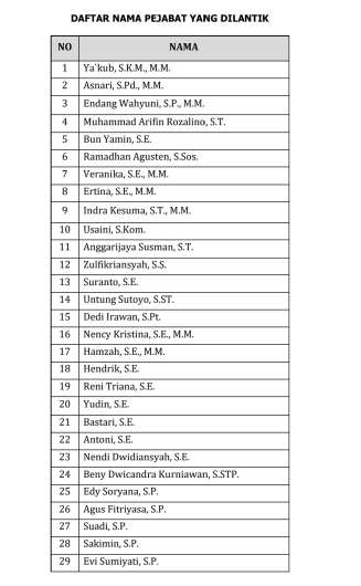 OKU TIMUR, IDSUMSEL.COM – Sebanyak 29 pejabat eselon II, III dan IV dìjajaran Pemkab OKU Timur kembali dìrotasi.