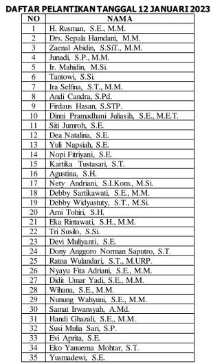 Berikut Nama-nama Pejabat yang Dilantik
