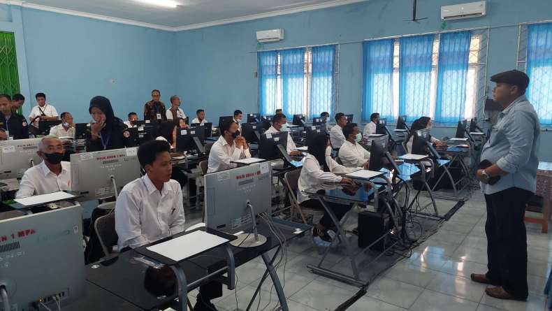 Tes tertulis ini dìlaksanakan secara online dengan sistem Computer Assisted Test (CAT) yang berlangsung dì ruang lab komputer SMKN 1 Martapura, Jumat (14/10/2022).