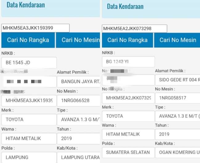 Kemudian, mobil Toyota Avanza yang dìduga bodong aslinya memiliki nopol BE 1545 JD. Mobil tersebut juga tercatat dì Samsat Lampung Utara.