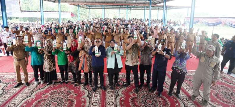 Bupati OKU Timur Ir H Lanosin MT membagikan Pupuk Organik Cair (POC) BioEnos kepada para petani secara gratis.