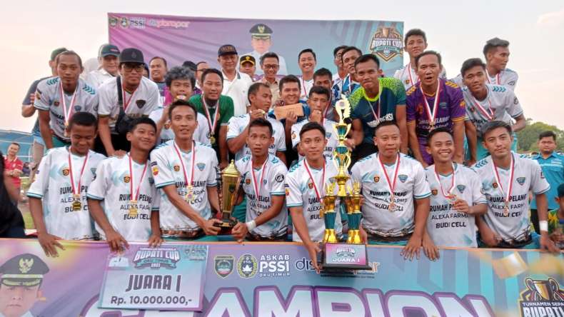 Hasil pertandingan final Bupati Cup OKU Timur 2023. Juara 1 Oldstar FC, juara 2 Sidodadi FC, juara 3 Boboboy FC dan juara Orong-Orong FC.