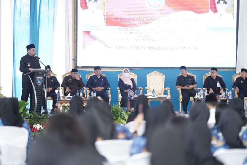 IDSUMSEL.COM – Bupati OKU Timur Ir H Lanosin ST melantik dan mengambil sumpah jabatan 166 Pegawai Negeri Sipil (PNS) Formasi Tahun 2021.