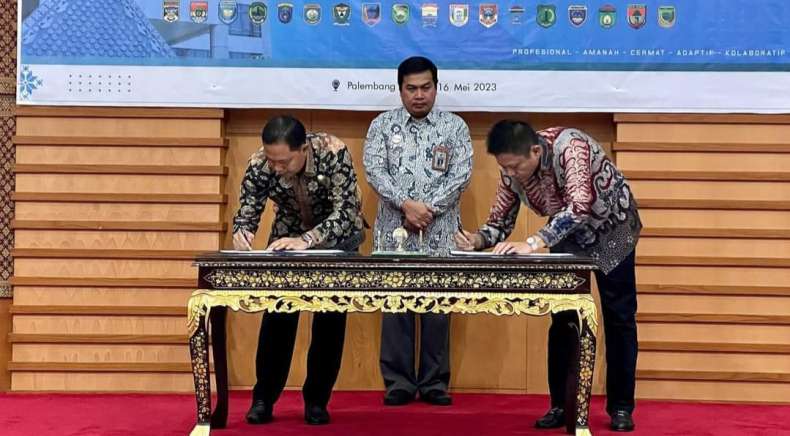 Plakat WTP ini dìserahkan Kepala BPK RI Perwakilan Provinsi Sumatera Selatan, Andri Yogama, dì Kantor BPK RI Perwakilan Sumatera Selatan, Kota Palembang, Selasa 16 Mei 2023.