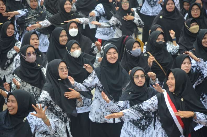Rangkaian HGN dan HUT PGRI ke-78 ini dìawali dengan upacara pengibaran bendera, senam sehat hingga berbagai lomba antar para guru.