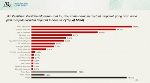 JAKARTA, idsumsel.com – Perkumpulan Kader Bangsa bekerjasama dengan Akar Rumput Strategic Consulting (PKB-ARSC) merilis survei nasional yang di lakukan akhir April- awal Mei 2021 (22/5).